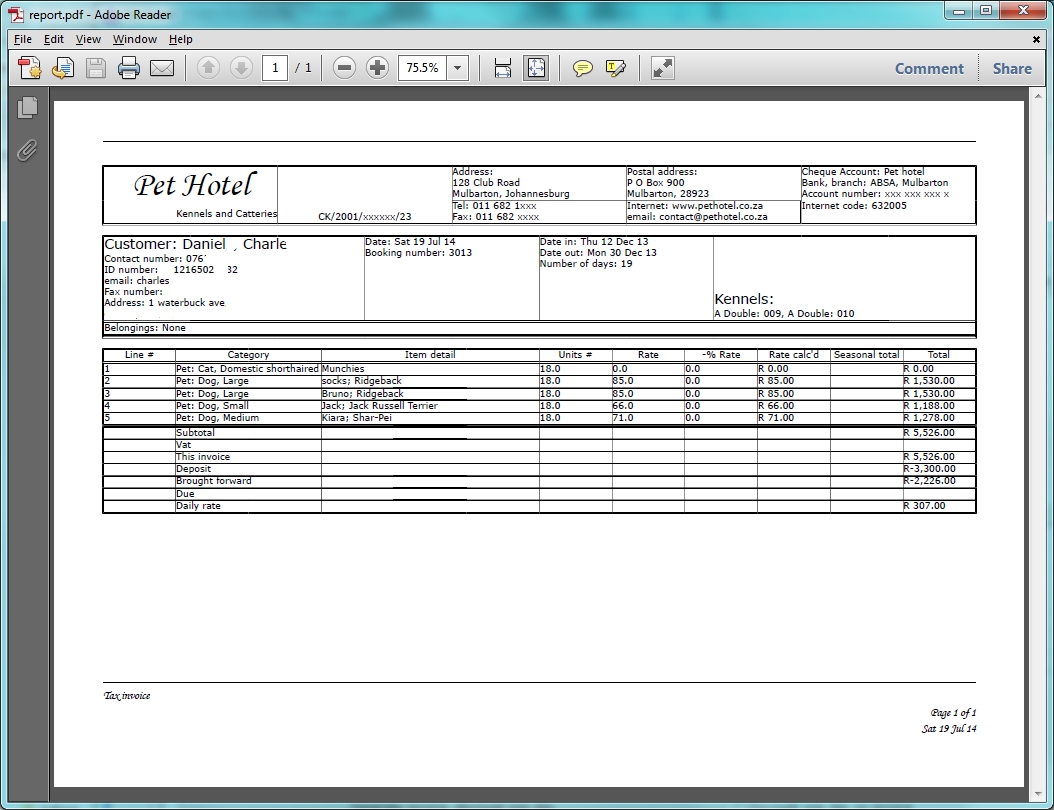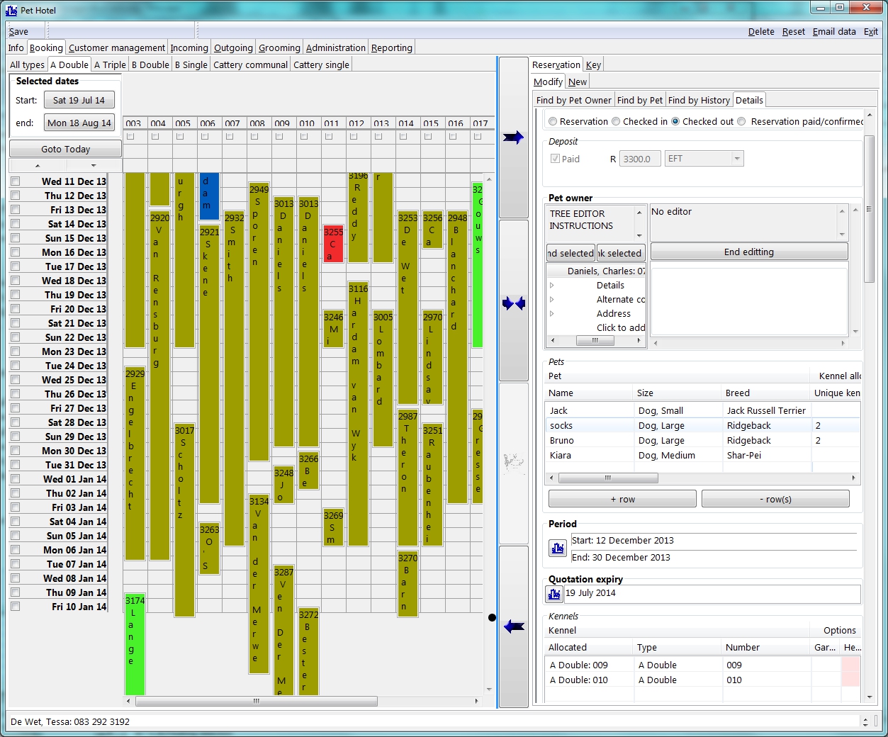 Allocation of one type of kennel during December showing bookings allocated per kennel